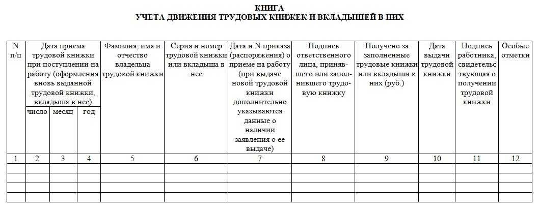 Скачать бланк книги учета движения трудовых книжек и вкладышей