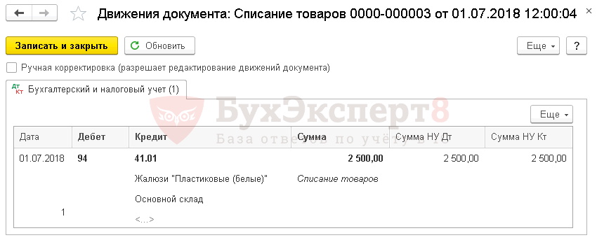 Списание недостачи товаров в результате инвентаризации