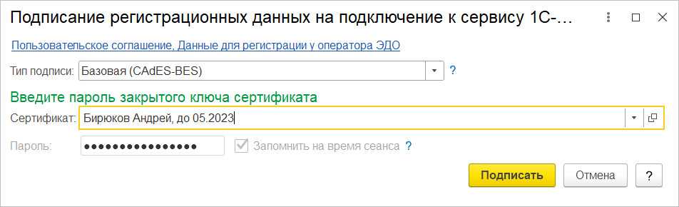 Если ранее в этом сеансе был проставлен флаг Запомнить на время сеанса пароль от данного сертификата, то окно подписания не появится.