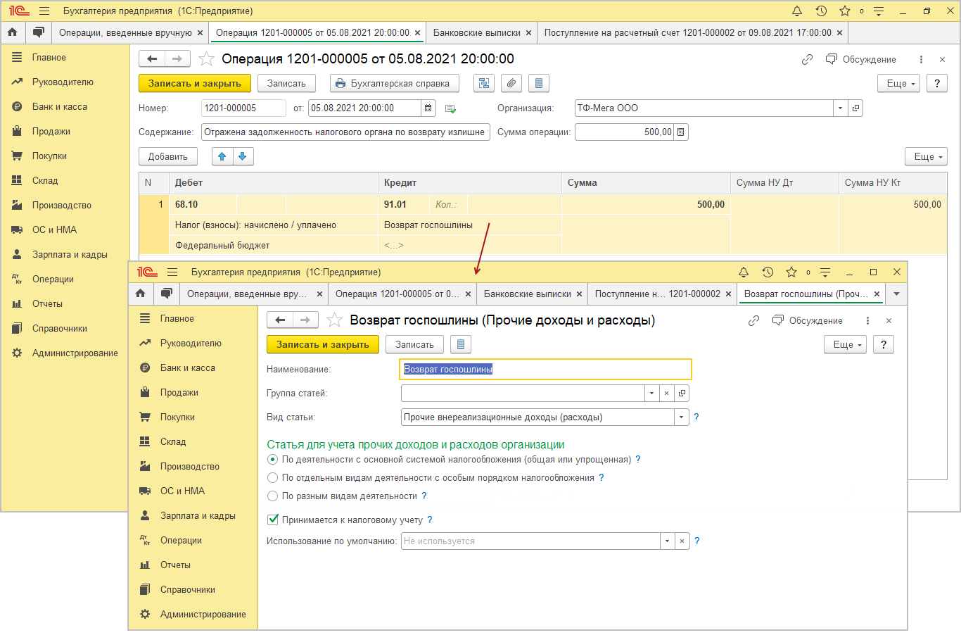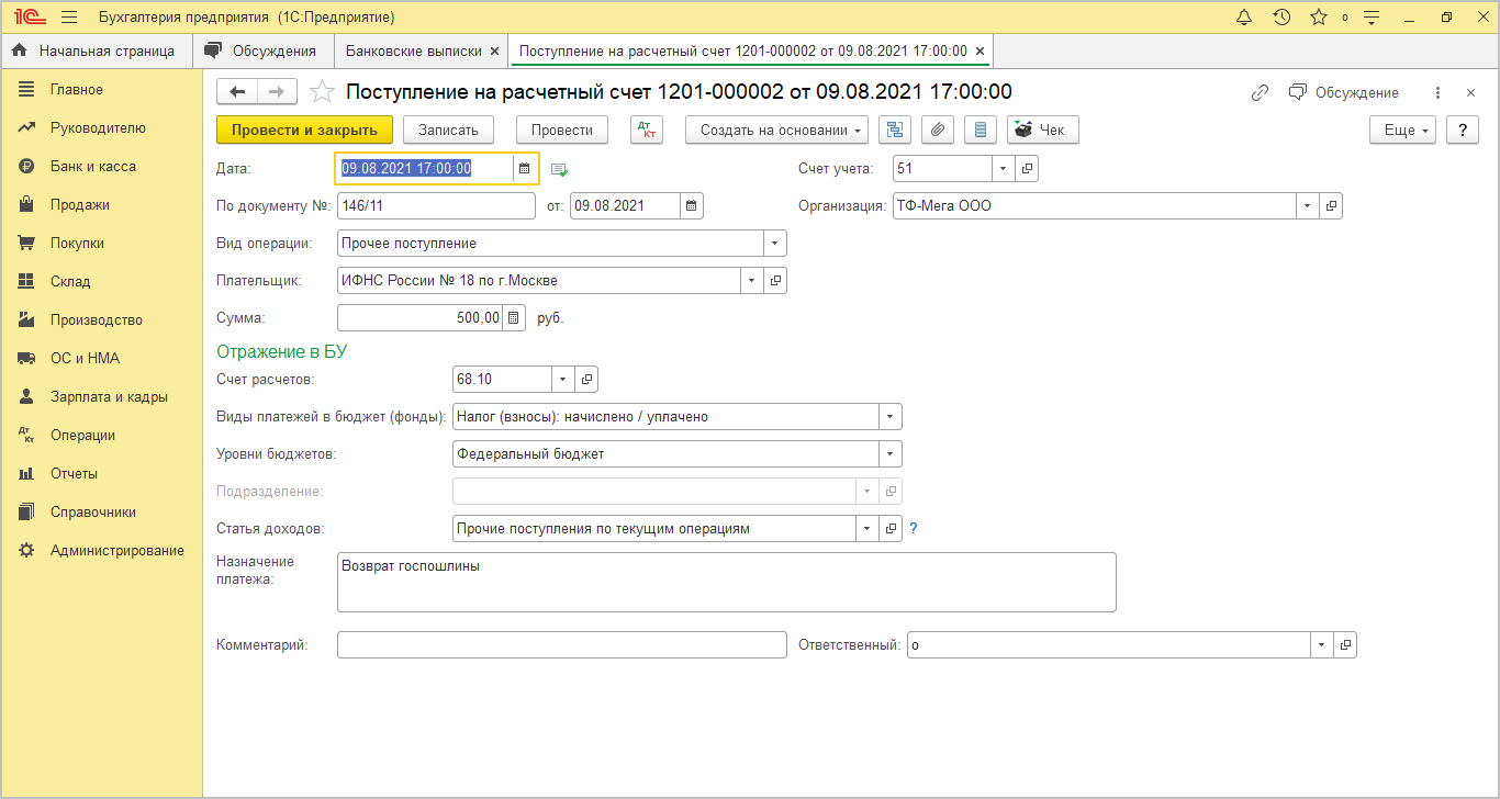 - Как в «1С:Бухгалтерии 8» отразить возврат госпошлины из бюджета?