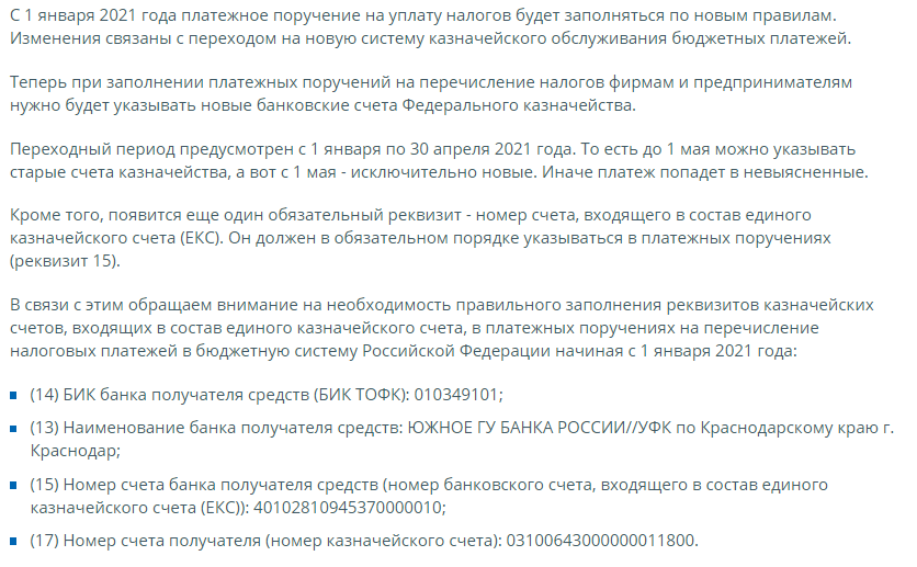 - Поменяются реквизиты для оплаты налогов и взносов банковских счетов Казначейства России.
