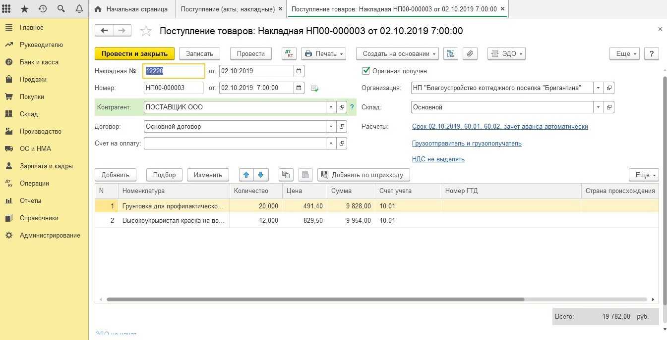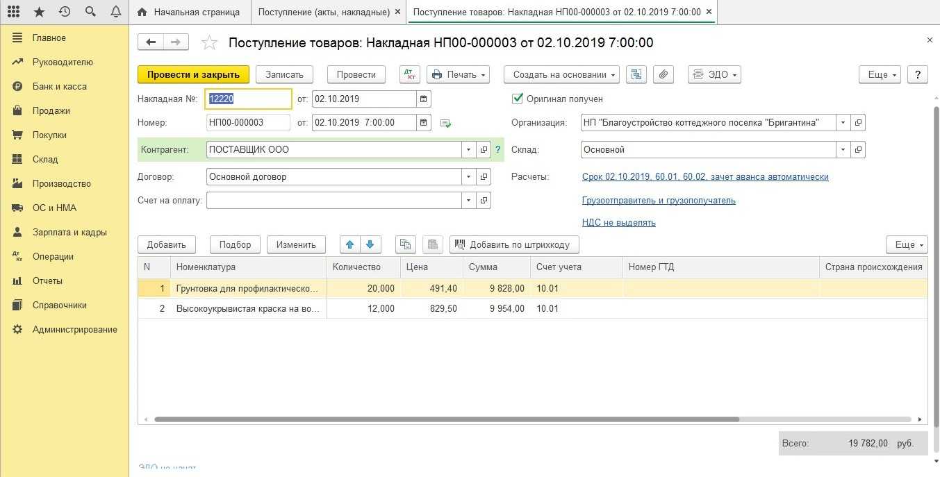Итак, допустим заказчик покупает необходимые материалы и оформляет приход на свое складское помещение.