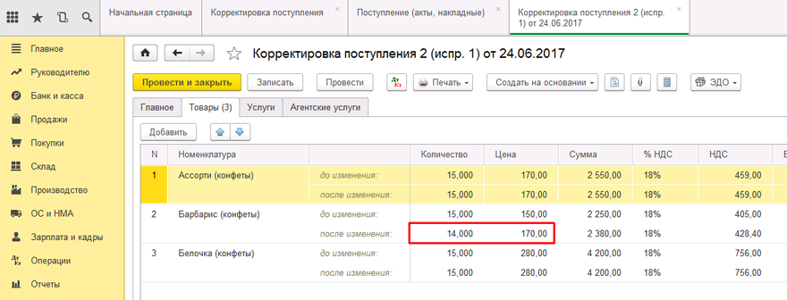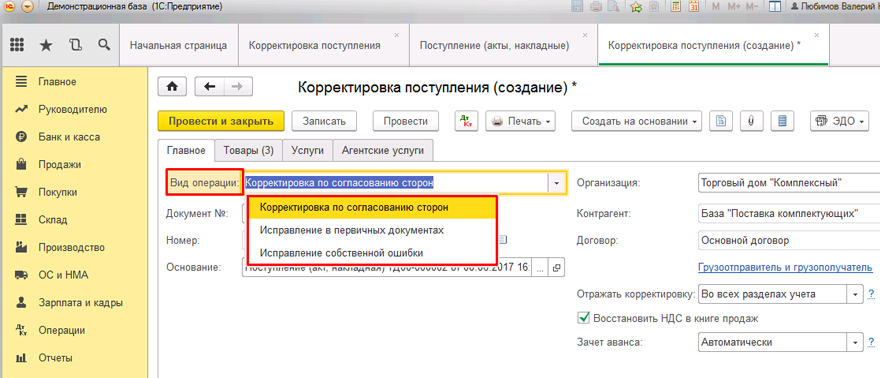 В таких случаях используйте документы Корректировка реализации или Корректировка поступления . Как их заполнять правильно, читайте дальше.