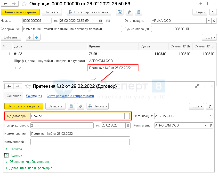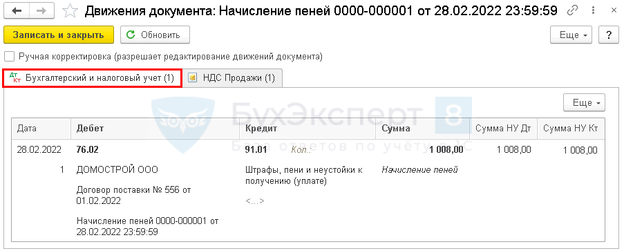 Как начислить штраф в 1С 8.3 проводки в учете продавца