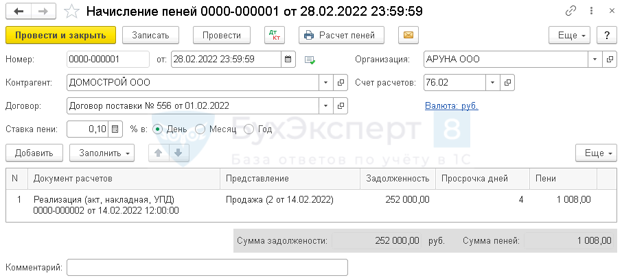 Итак, мы успешно разобрались с начислением пени и проводками в 1С 8.3 Бухгалтерия.