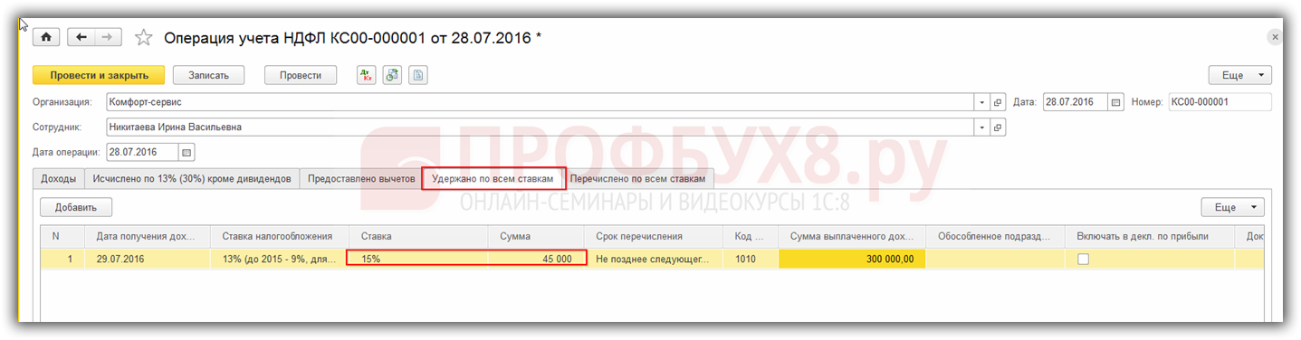 Шаг 2. Удержание НДФЛ с дивидендов.