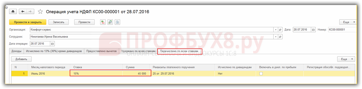 Шаг 4. Перечисление НДФЛ в бюджет с начисленных дивидендов.