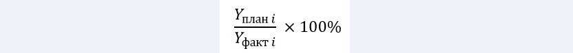 Индивидуальные значения KPI по каждому показателю рассчитываются как отношение плановых показателей к фактическим, помноженные на 100%: