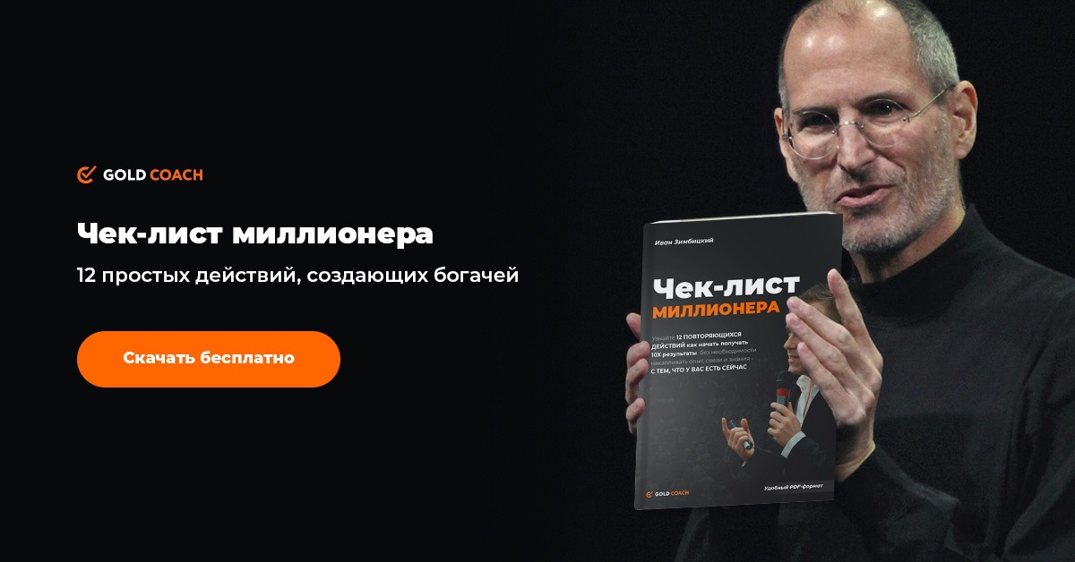 Что это за ритуалы и как настроить мозг на богатство Иван Зимбицкий открывает в своем легендарном «Чек-листе миллионера». Успейте скачать, пока он в открытом доступе: Скачать «Чек-лист миллионера» сейчас