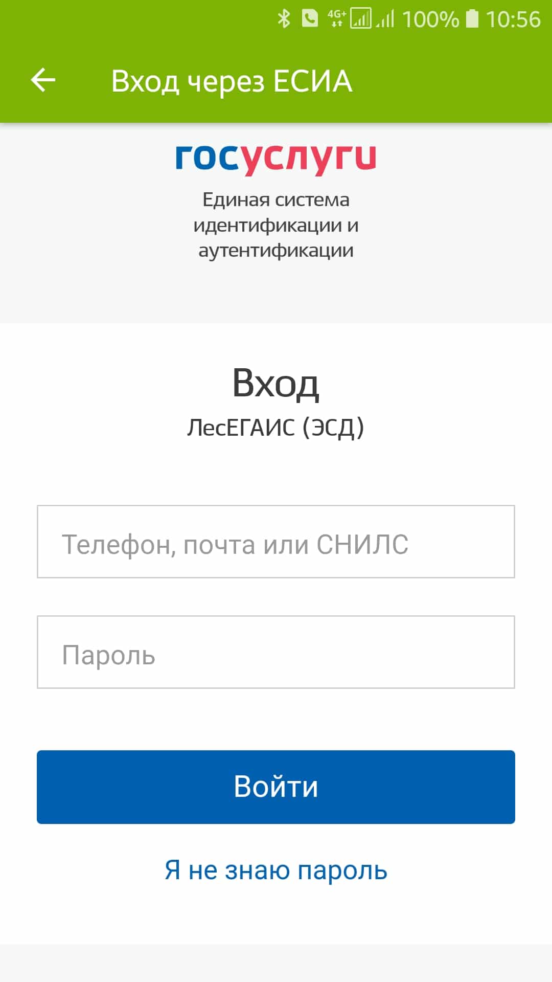 При нажатии на кнопку Вы переходите к личной учетной записи на сайте Госуслуг, куда и нужно залогиниться для продолжения работы в ЕГАИС Лес.