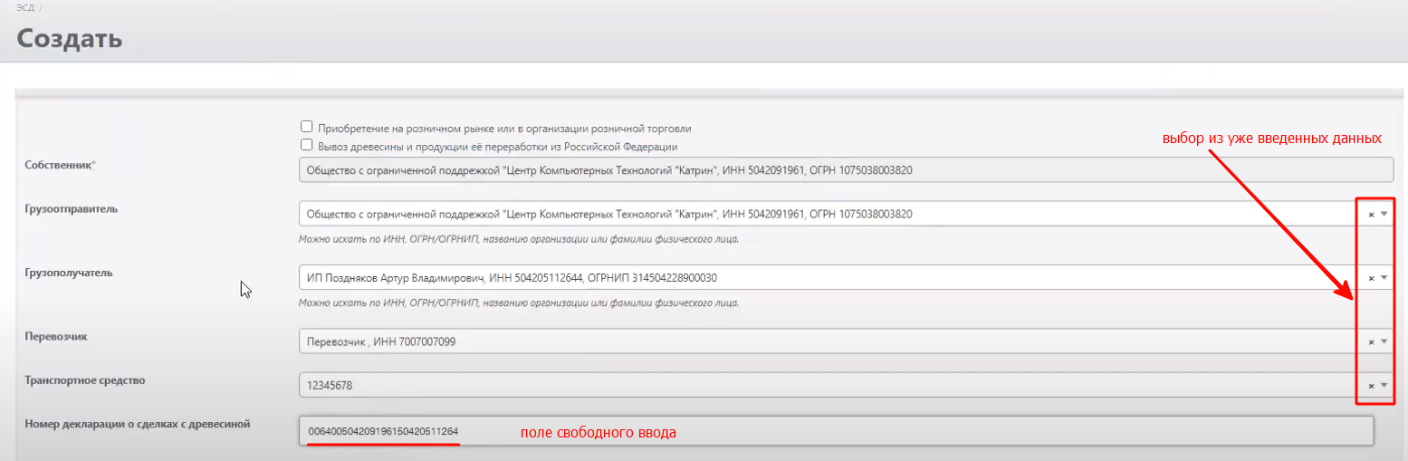 После чего можно приступить к созданию ЭСД на отгрузку древесины.