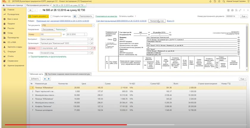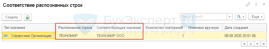 Если записи в информационной базе пользователя немного отличаются от указанного в документе, подбирает наиболее похожие варианты и просит пользователя их подтвердить.