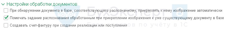 - Активируем опцию «Распознавание документов» в настройках 1С;