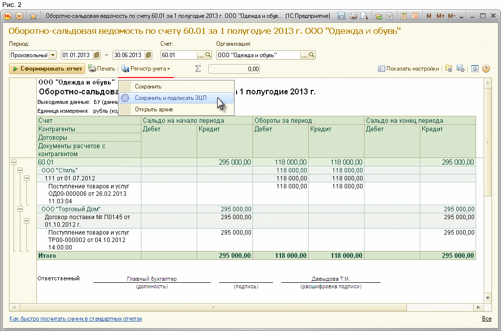 В программе «1С:Бухгалтерия 8» (ред. 3.0), начиная с релиза 3.0.21, существует возможность формирования регистров бухгалтерского учета в электронном виде с подписанием электронной подписью.
