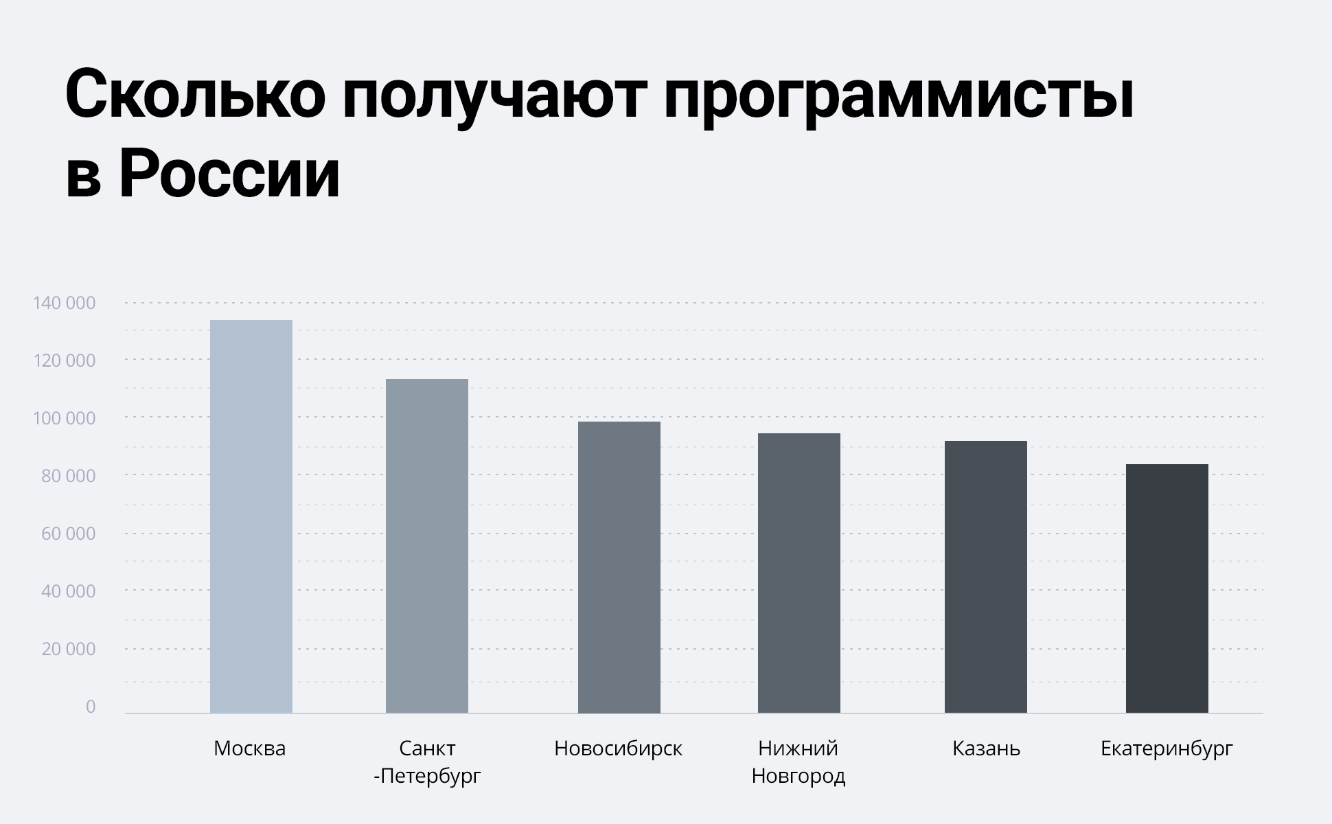 В других городах России зарплаты специалистов обычно ниже. Даже в относительно крупных населенных пунктах уровень их доходов редко достигает столичного.