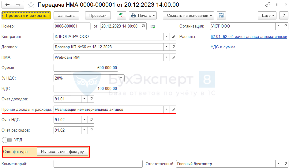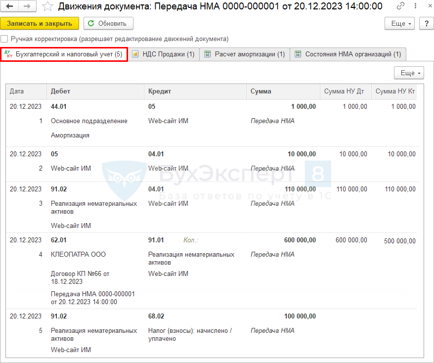 Продажа НМА проводки в 1С 8.3