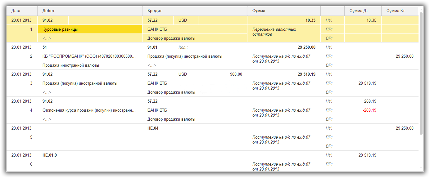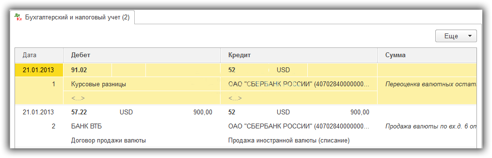 После проведения, можно убедится что в 1С 8.3 сформировались правильные бухгалтерские проводки по продаже валюты: