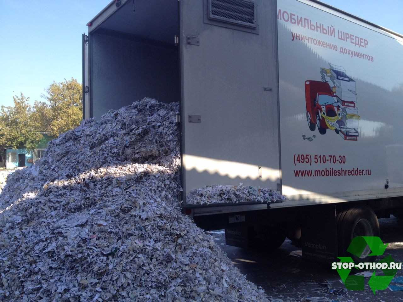 После измельчения бумажные отходы прессуются, после чего следует их вывоз на место последующей переработки.