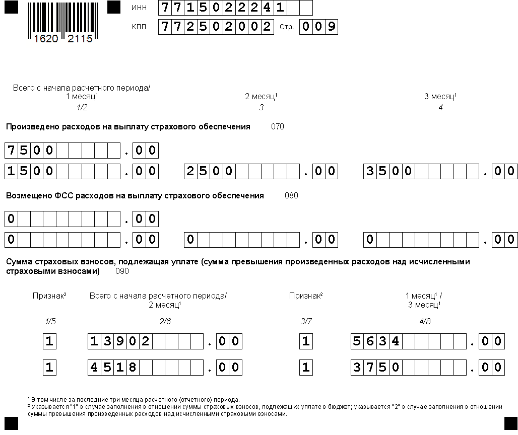 Кроме того, на второй странице Приложения 2 указываются расходы на выплату страхового обеспечения и суммы, возмещенные из ФСС (при зачётной системе).