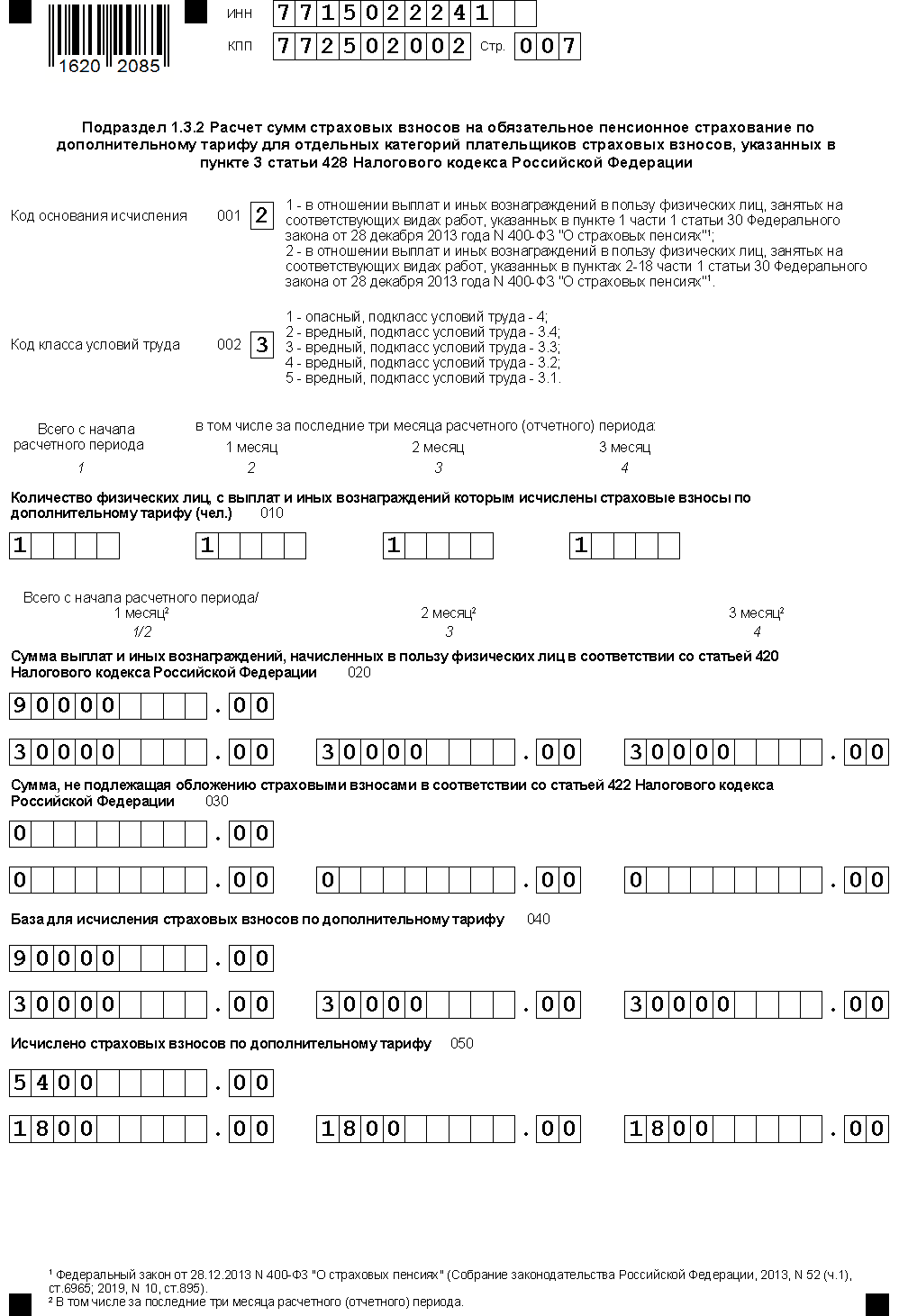 Подраздел 3.2.2 заполняют только те работодатели, кто уплачивает пенсионные отчисления по дополнительному тарифу.