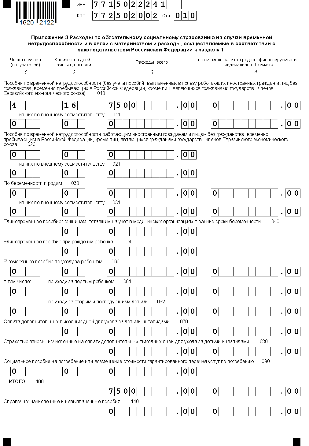 - в приложении 3 — общей величины расходов на пособия по беременности и родам, количества получателей таких пособий и числа оплачиваемых дней по ним;