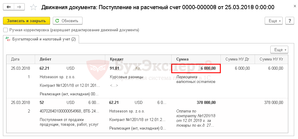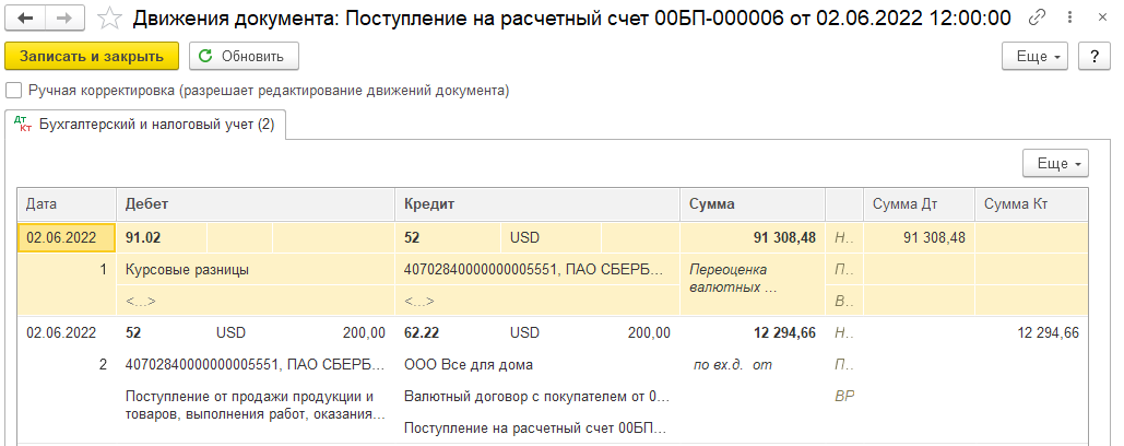 Так как реализации по договору этому контрагенту еще не было, программа распознала в операции аванс от покупателя и сформировалась проводка по Кредиту счета 62.22