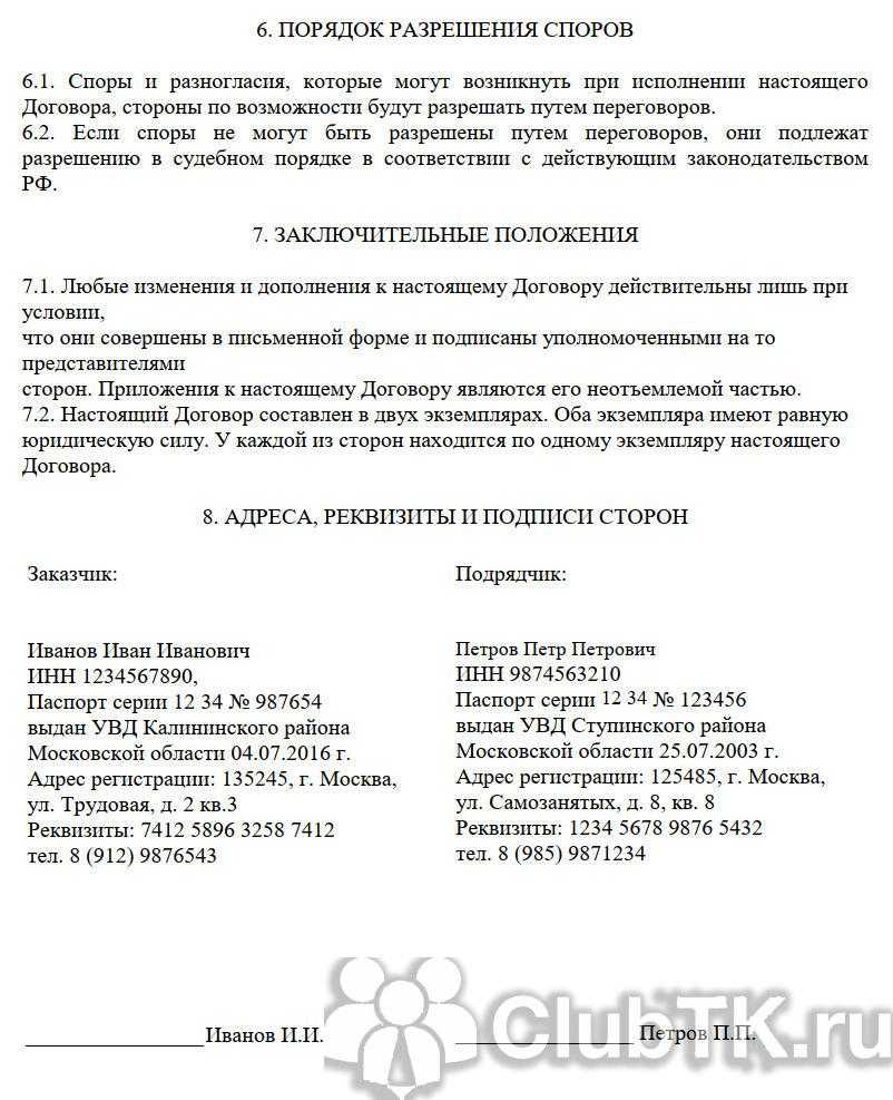 Вот образец договора ГПХ с самозанятым физического лица: