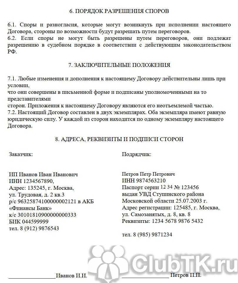 Эти моменты на уровне устных договоренностей действуют лишь до момента столкновения интересов. А в договоре все эти нюансы можно (да и нужно) прописать. Все подобные ситуации предусмотреть заранее невозможно. Поэтому подписание договора даже в произвольной форме может уберечь стороны от неприятностей. Если дело дойдет до судебного разбирательства, наличие договора на выполнение работ будет иметь весомое значение для исхода процесса. В договоре следует прописать порядок оказания услуг, требования к услугам, обязанности заказчика и исполнителя, стоимость работ и порядок оплаты.
