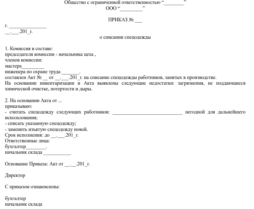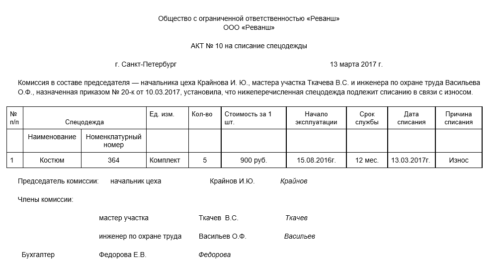 При списании спецодежды учитываются определенные условия. Изучим их на простом примере.