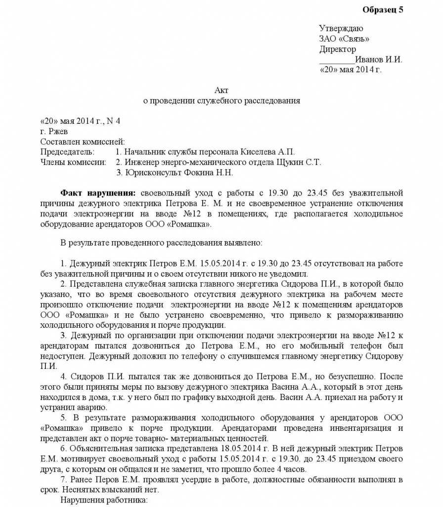 - Акт о совершении дисциплинарного проступка работником — образец 2018