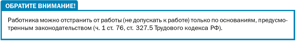 - основание отстранения от работы (недопущения к работе);
