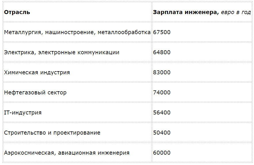 Рассмотрим ставки инженеров в Европе (здесь принято считать доход, получаемый в год, а не в месяц).