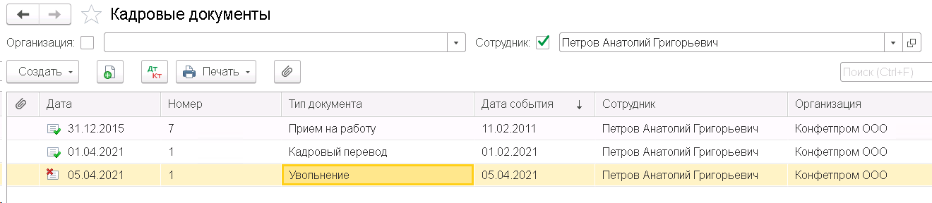 - 1 — порядковый номер строки с кадровым мероприятием;
