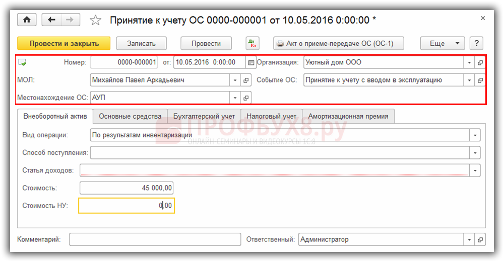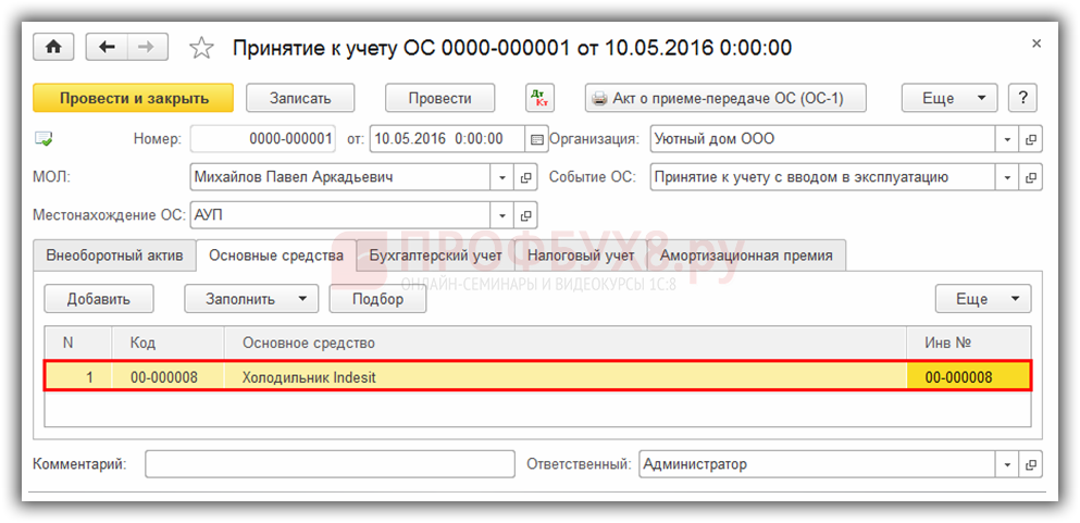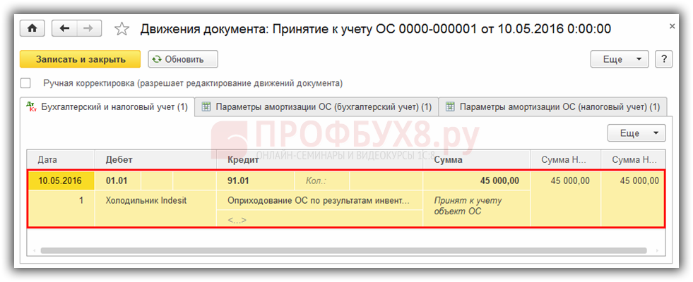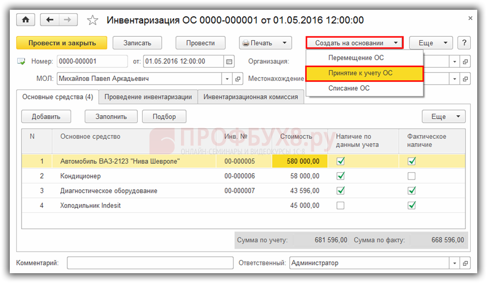 - Излишки основных средств при инвентаризации в 1С 8.3