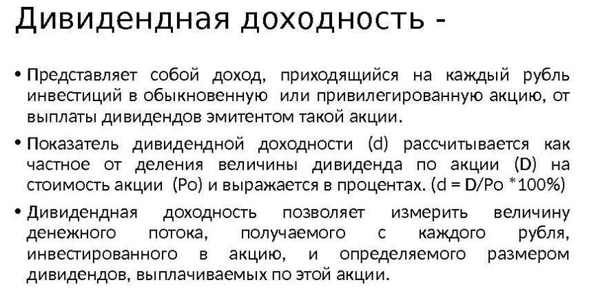 - Теперь для получения значения дивидендного дохода надо размер дивиденда разделить на стоимость акции. В результате можно узнать, сколько процентов в год, в виде дивидендов, будет приносить каждая акция.