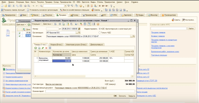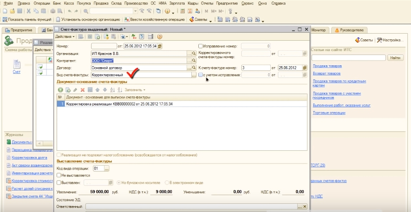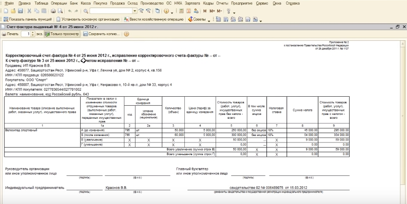 - Шаг 2. Создание в 1С корректировочный счет-фактуры