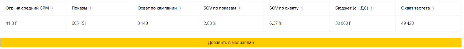 Для медийной кампании сделаем расчет охвата на бюджет 30 000 рублей.