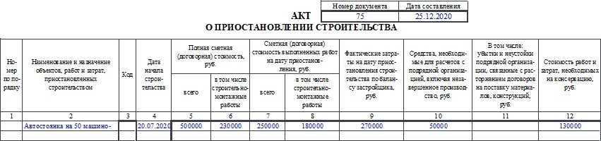 - Как заполнять Акт о приостановлении строительства
