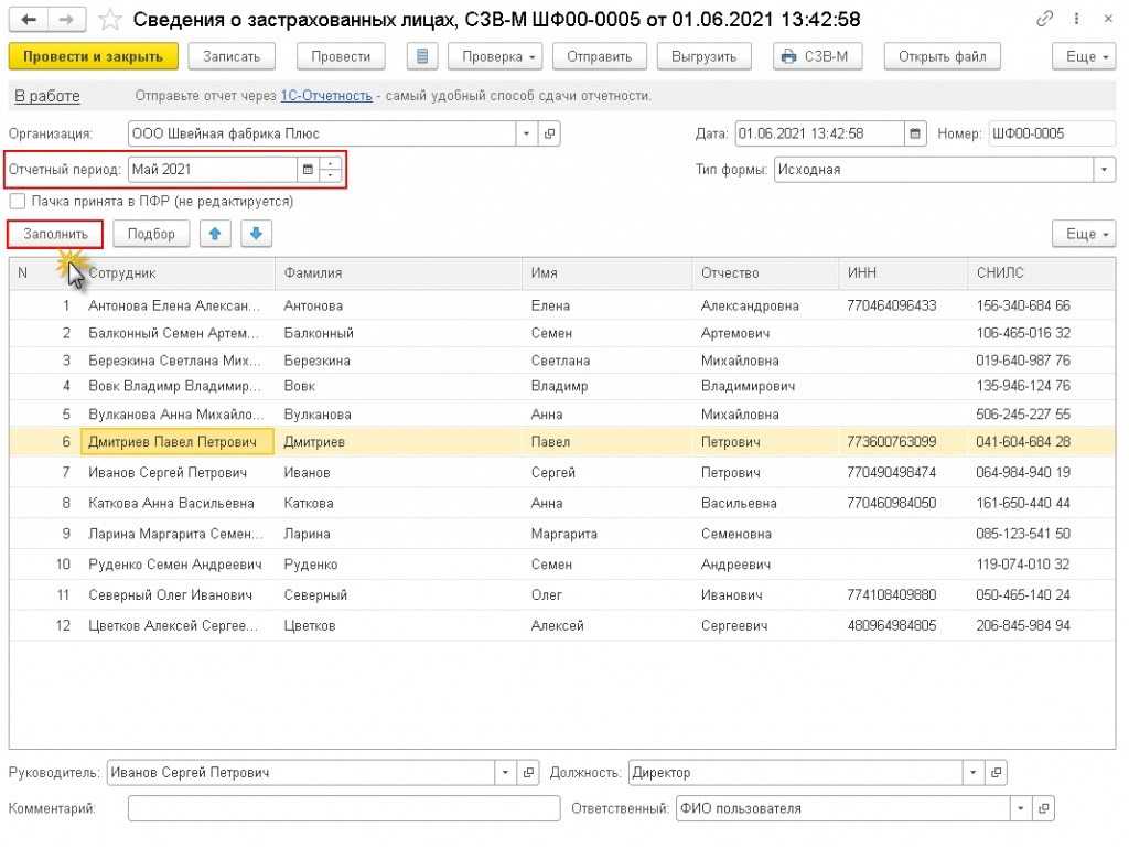 Как заполнить сведения о застрахованных лица за май 2021 года?