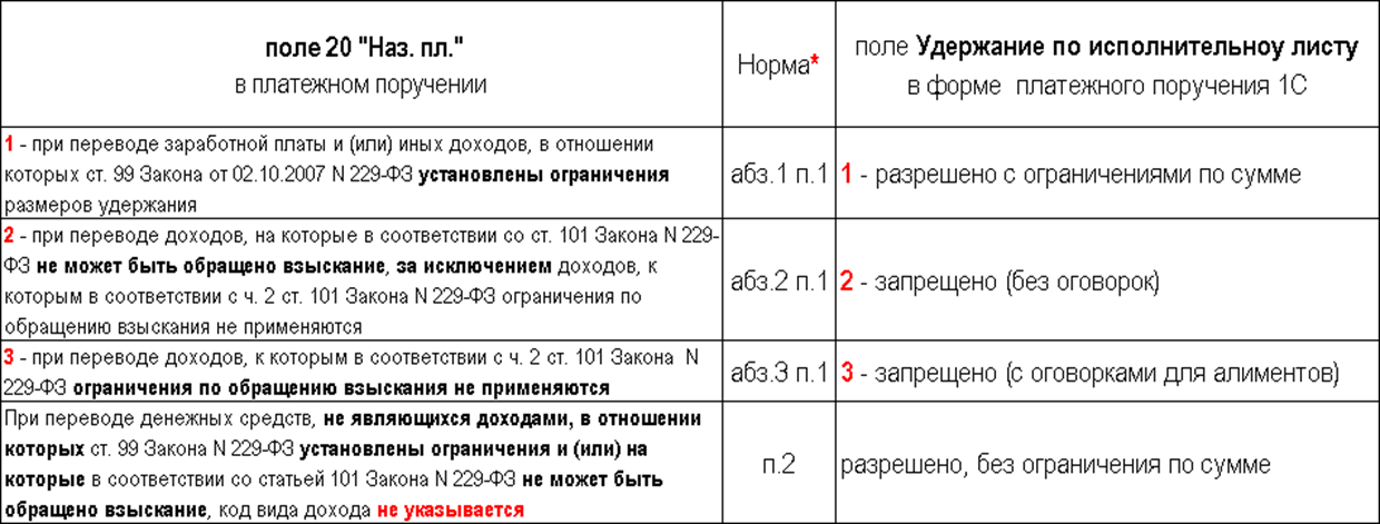 Если перечисляется доход, из которого уже удержана сумма в соответствии с Законом N 229-ФЗ, то в назначении платежа указывается (Информационное письмо Банка России от 27.02.2020 N ИН-05-45/10):
