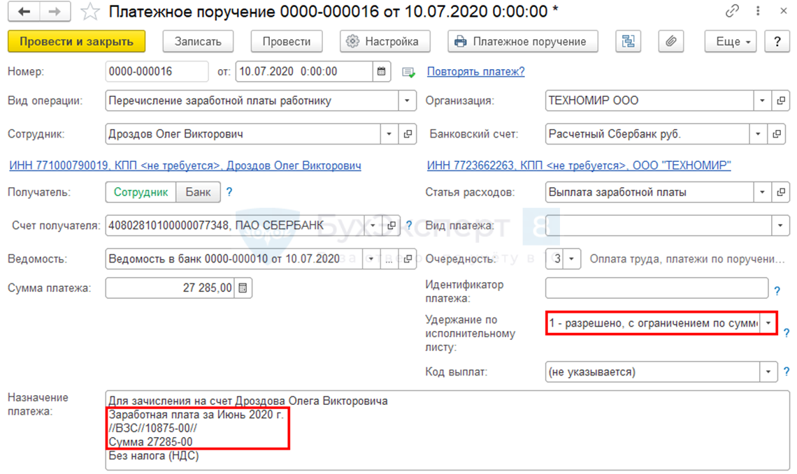 С 01.06.2020 при перечислении физлицам в платежках нужно указывать код вида дохода для удержаний: