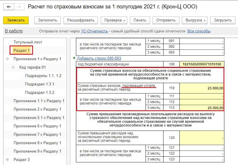 Данные из стр. 090 подлежат переносу в разд. 1. А именно, если образовалась величина к оплате страхователем, сведения переносятся в стр. 110-113; к зачету – в стр. 120-123. Такие же рекомендации ФНС содержатся в Письме № БС-4-11/6753@ от 09.04.18 г. При этом не допускается одновременное внесение данных в стр. 110 и 120 – за один и тот же период заполняется только одна из них.