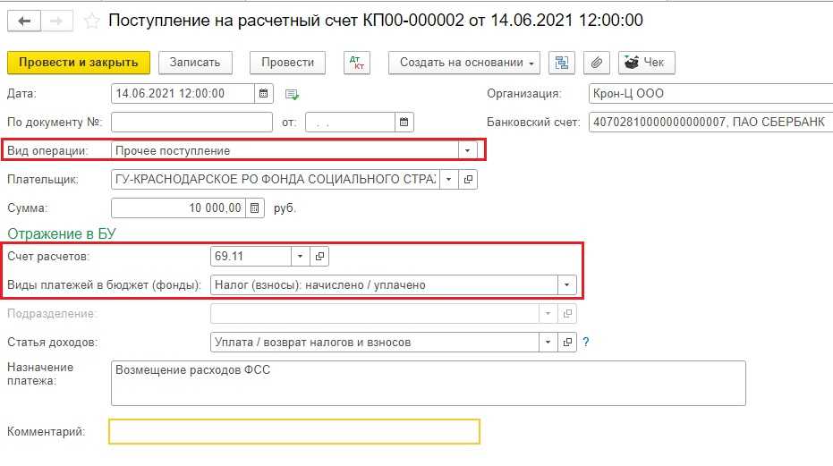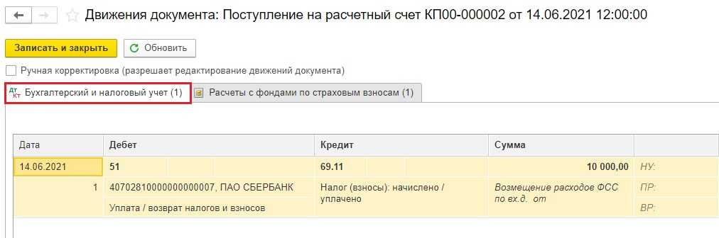 - Отражение в отчётности сумм полученного возмещения расходов от ФСС