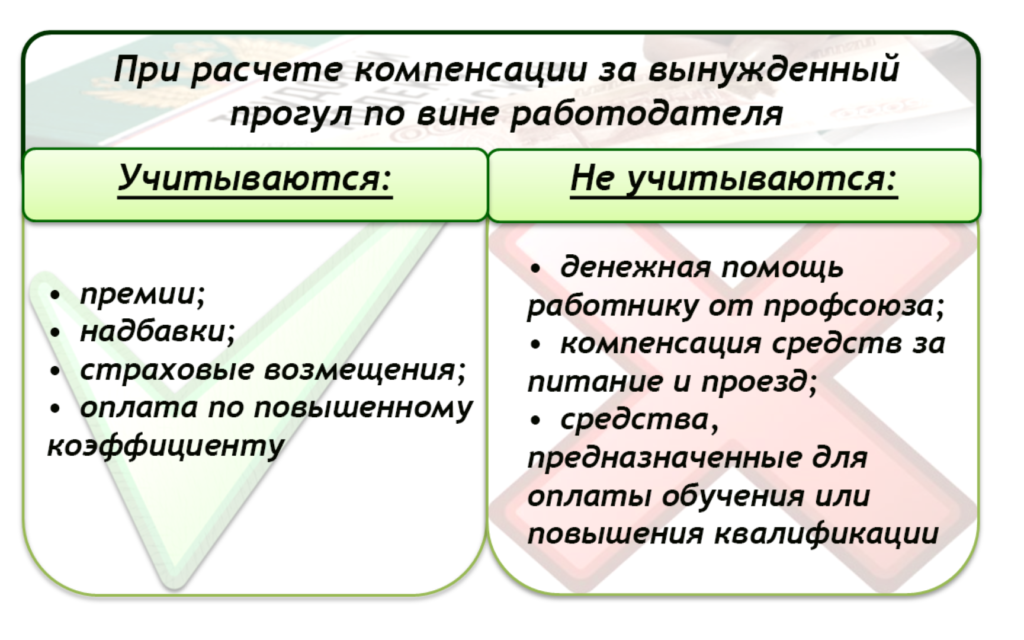 Оплата вынужденного прогула должна пониматься как разновидность компенсации. Однако, органы, функционирующие в сфере финансов и налогов, не относят данные выплаты к компенсациям.