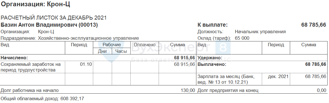 - сумма к выплате будет уменьшена на долг по НДФЛ;