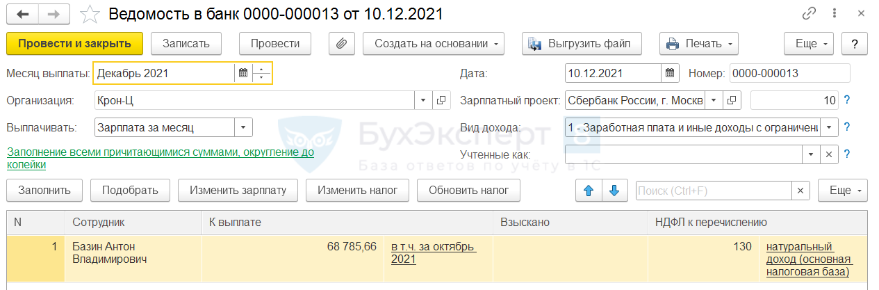 | На банковскую пластиковую карточку сотрудника (по зарплатному проекту) | Тогда же, когда будет переведена зарплата на карту либо на следующий день |