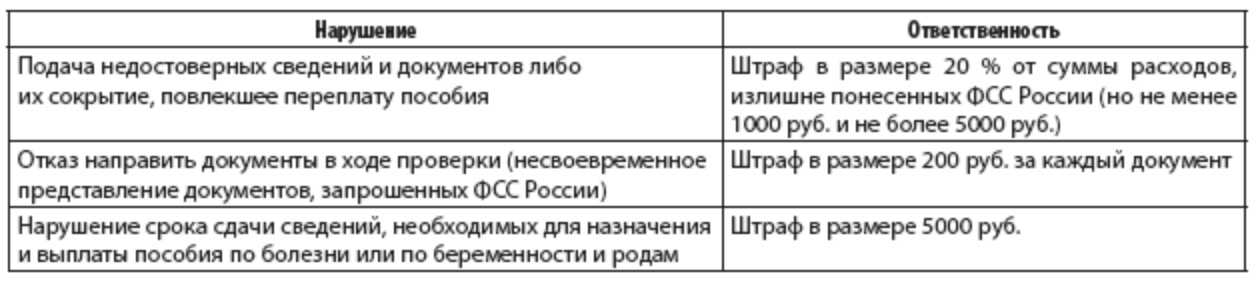 Работодатель отправит недостоверные данные и документы или скроет верную информацию, вследствие чего ФСС выплатит больше денег, чем нужно — штраф в 20% от суммы излишних расходов фонда, но не больше 5 000 руб. и не меньше 1 000 руб.