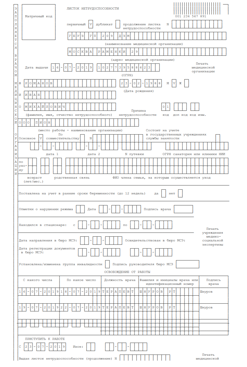 - Как правильно заполнить больничный лист