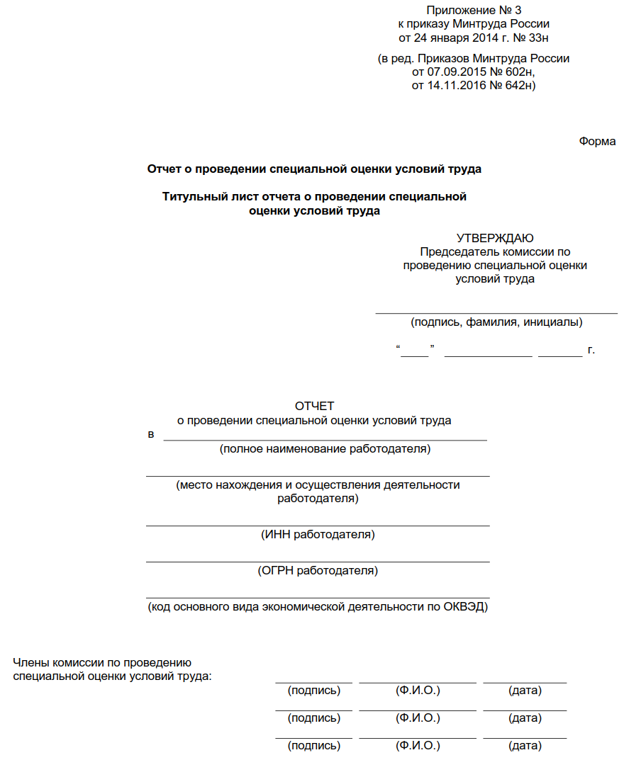 По результатам оценки эксперт готовит пакет документов в виде отчета. Форма утверждена приложением 3 к Приказу 33н. В этом же документе содержится инструкция по заполнению формы.