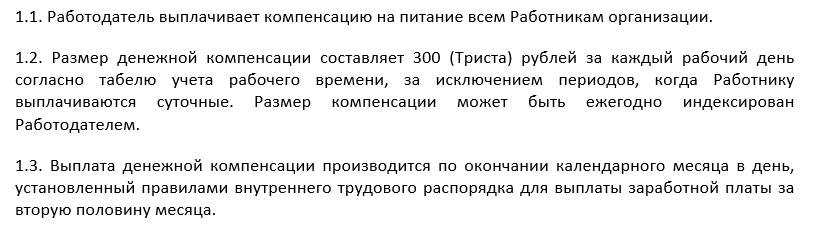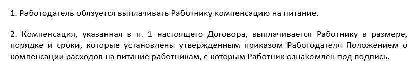 Пример, как прописать условие о компенсации работнику в трудовом договоре:
